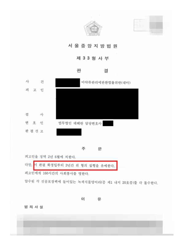 법원은 마약의 양이 방대하여 죄책이 무겁다고 지적하면서도, 변호인의 주장을 받아들여 의뢰인에게 🚨징역 2년 6월에 집행유예 3년을 선고했습니다.
