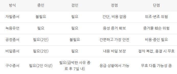 유언 방식별 특징 요약
