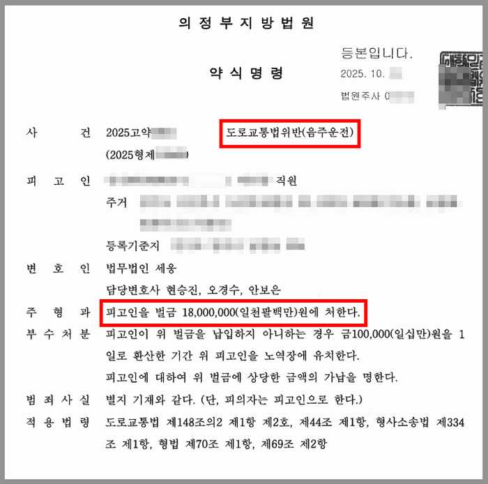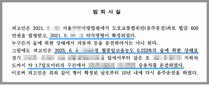 H는 약 4년 전 음주운전으로 벌금형의 처벌을 받은 바 있었습니다. 그런데 다시 혈중알코올농도 0.222%의 만취 상태에서 운전을 하다가 적발되고 말았습니다.