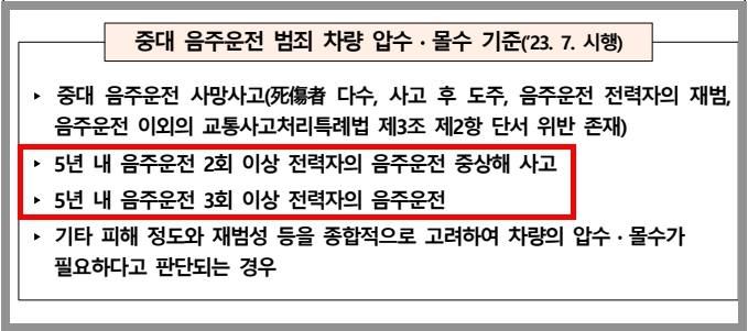 음주 수치와 과거 전력과의 시간적 간격은 2회 이상의 음주운전에 대한 처벌을 정할 때 가장 중요하게 고려되는 요소들입니다.
