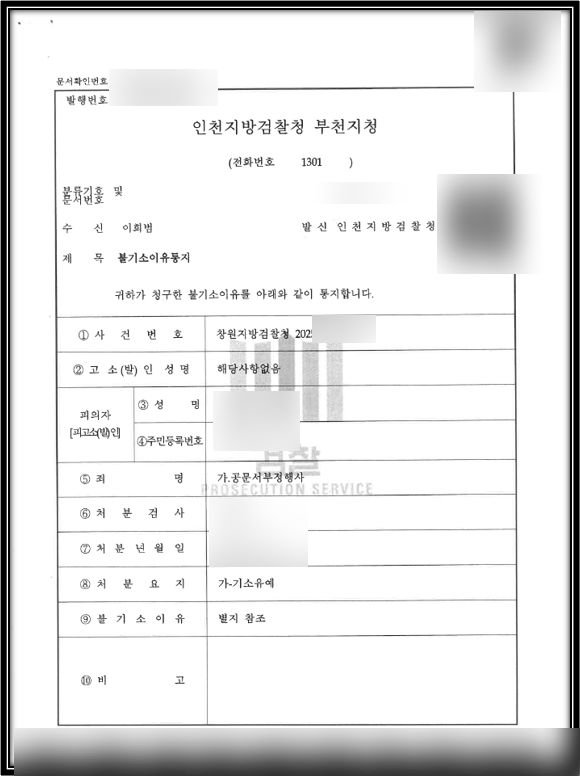 피의사실은 인정된다. 피의자는 초범으로, 모친을 동반하지 않은 상태에서 장애인 전용 주차구역에 주차하다가 적발된 사안이다. 그러나 피의자가 범행 일체를 자백하고 진심으로 반성하는 점, 이 사건 주차표지가 피의자 가족을 대상으로 발급된 유효한 공문서인 점, 이미 과태료를 전액 납부한 점, 재범 방지를 다짐한 점 등 여러 사정을 참작하여 기소를 유예한다.