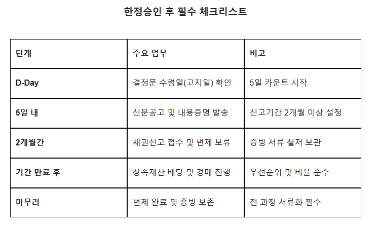 [한정승인] “결정문이 끝이 아닙니다” – 상속재산 청산 절차와 5일 이내 공고 의무