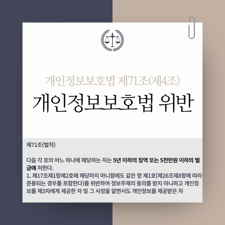 1. 제17조제1항제2호에 해당하지 아니함에도 같은 항 제1호(제26조제8항에 따라 준용되는 경우를 포함한다)를 위반하여 정보주체의 동의를 받지 아니하고 개인정보를 제3자에게 제공한 자 및 그 사정을 알면서도 개인정보를 제공받은 자