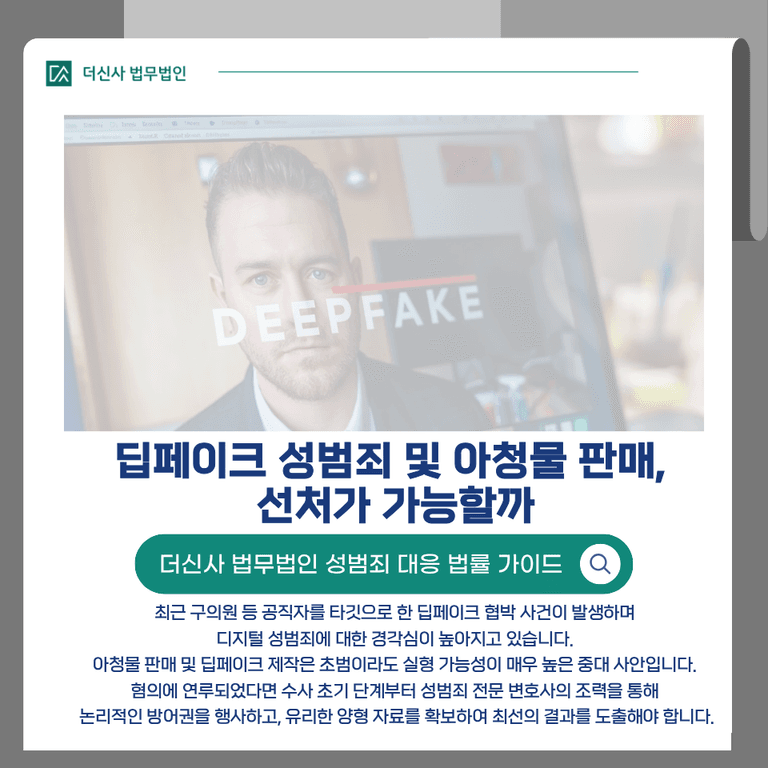 시작하기에 앞서, 딥페이크 합성물 제작 및 유포는 단순한 장난이 아닌 중대한 실형 선고 가능성이 매우 높은 범죄임을 명심해야 하며, 피해를 입으셨다면 즉시 성범죄 전문 변호사의 조력을 받아야 한다는 점을 안내해 드립니다.