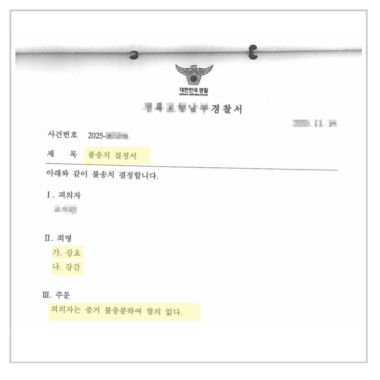 불송치 결정이라는 결과로 분명히 보여준 사례였습니다.