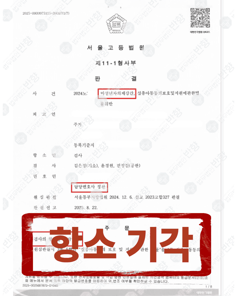 의뢰인 A씨는 미성년자와의 교제 과정에서 성관계를 가진 사실로 인해 「아동·청소년의 성보호에 관한 법률」상 의제강간 혐의로 기소되었습니다. 1심 재판부는 관련 법리에 따라 유죄를 인정하고 형을 선고하였으며, 이에 A씨는 판결에 불복하여 항소를 제기하였습니다.