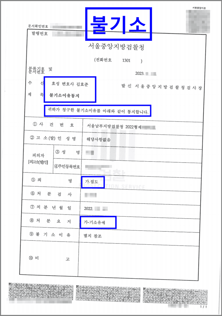 📌 택시 안 가방 · 지갑 · 휴대전화 절도 사건 → 불기소 처분 (전과 없이 사건 종료)