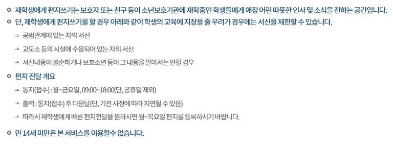 법무부 홈페이지 ‘소년보호 편지쓰기’를 통해