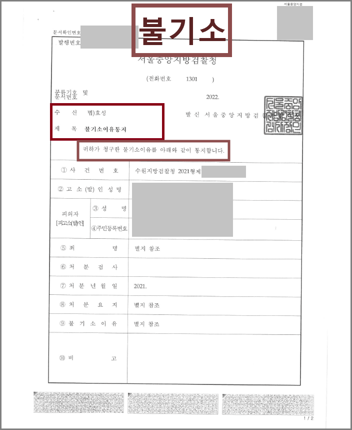 피의사실은 인정하지만 기소유예(불기소) 처분을 내렸습니다.
