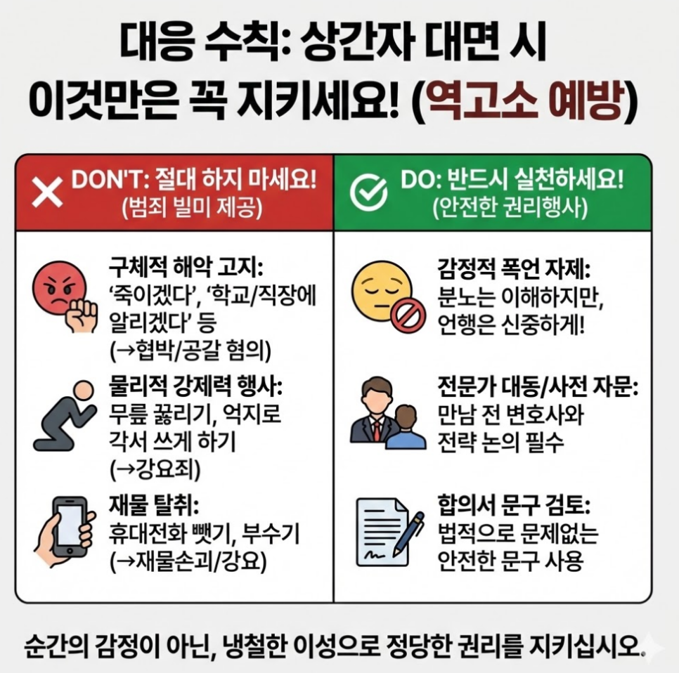 배우자의 외도를 알게 된 순간 느끼는 분노와 배신감은 말로 다하기 어렵습니다. 배우자의 불륜은 단순한 다툼을 넘어 삶의 근간을 흔드는 재앙과도 같습니다. 피해자는 당연히 상간자를 만나 사과를 요구하고, 파탄 난 가정에 대한 보상조로 위자료 합의를 진행하기도 합니다. 하지만 이 과정에서 분노를 참지 못하고 한 행동 때문에 피해자가 오히려 피의자로 몰려 처벌받을 수도 있습니다.