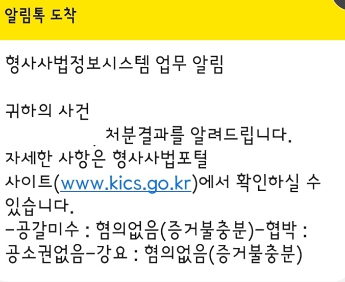 고소인은 이후 불송치 결정에 대해 이의신청을 제출하였는데 중간에 양자의 합의가 이루어졌습니다. 이후 검찰은 공갈미수와 강요 혐의에 대해서는 불기소(혐의없음) 결정을, 반의사불벌죄인 협박에 대해서는 합의가 되었으므로 공소권없음 결정을 하여 사건이 종결되었습니다.