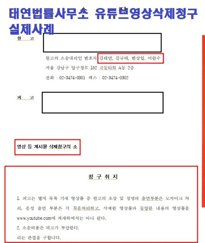 반드시 유튜브 전문 변호사이신 김태연 대표 변호사 님을 찾아주시기 바랍니다.