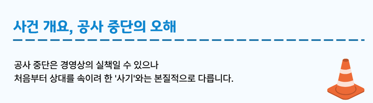 포항 지역에서는 공사 중단만으로 사기 고소가 제기되는 경우가 종종 발생합니다.