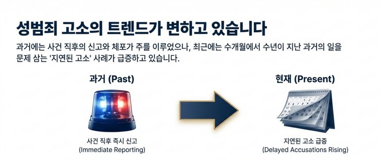 성범죄 사건, 특히 '강간' 혐의로 고소를 당하게 되면 피의자는 극도의 공포와 억울함을 동시에 느끼게 됩니다. 최근에는 사건 발생 직후가 아니라, 수개월에서 길게는 수년이 지난 과거의 일을 문제 삼아 고소하는 사례가 늘고 있습니다.