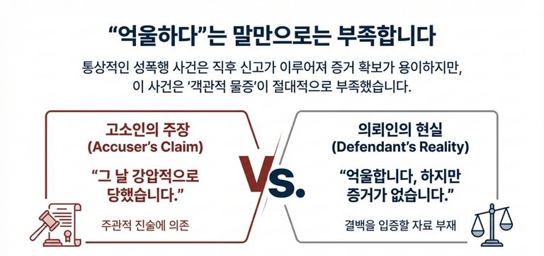 의뢰인은 억울함을 호소했지만, 이를 입증할 '객관적 물증'이 부족하다는 것이 가장 큰 난관이었습니다.