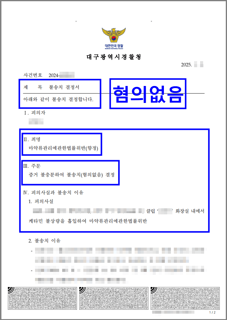 🔎 클럽 케타민 흡입 혐의, 16년 경력 변호사 도움으로 혐의없음 처리된 사례