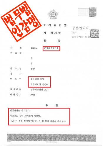 전주지방법원은 이 사건에 대해 다음과 같이 선고하였습니다.