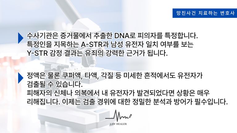 DNA가 검출되었다는 사실 자체에 위축되기보다, 채취와 분석 등 전 과정을 검토하여 신빙성의 허점을 찾아내는 것이야말로 유리한 결과를 이끄는 결정적인 열쇠임을 명심해야 합니다.