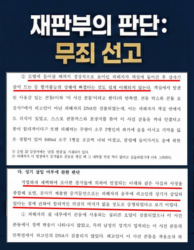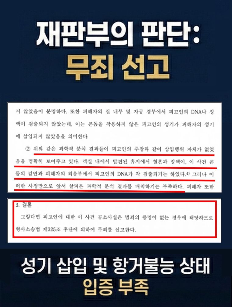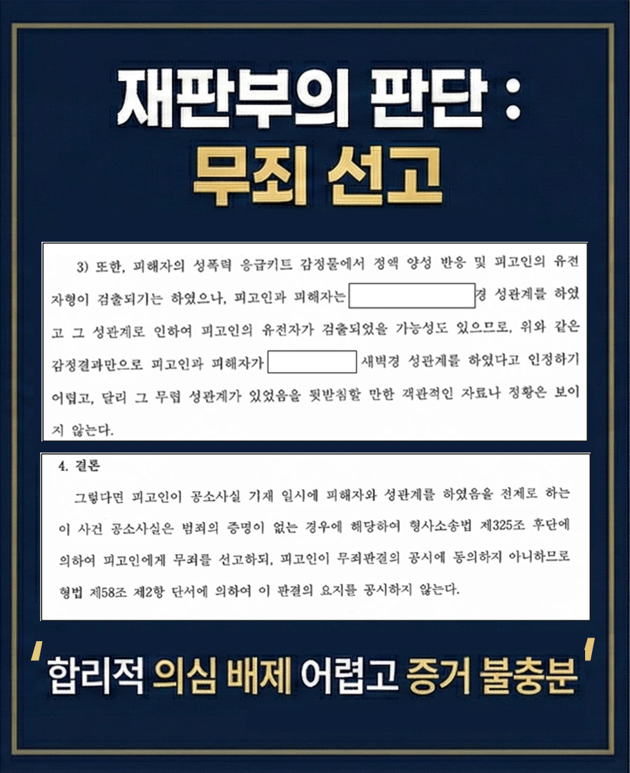 기존 또는 사후 성관계로 인해 유전자가 검출되었을 가능성을 배제할 수 없다는 점이 핵심이었습니다.