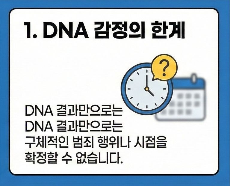 특히 DNA 감정 결과만으로는 구체적인 범죄 행위나 시점을 확정할 수 없다는 점은 여러 판례를 통해 확인되었습니다.