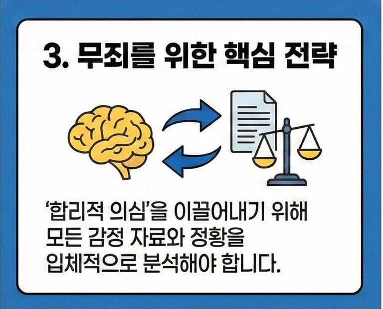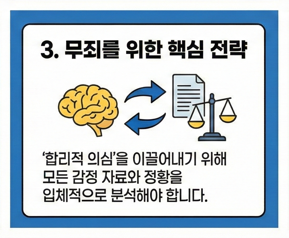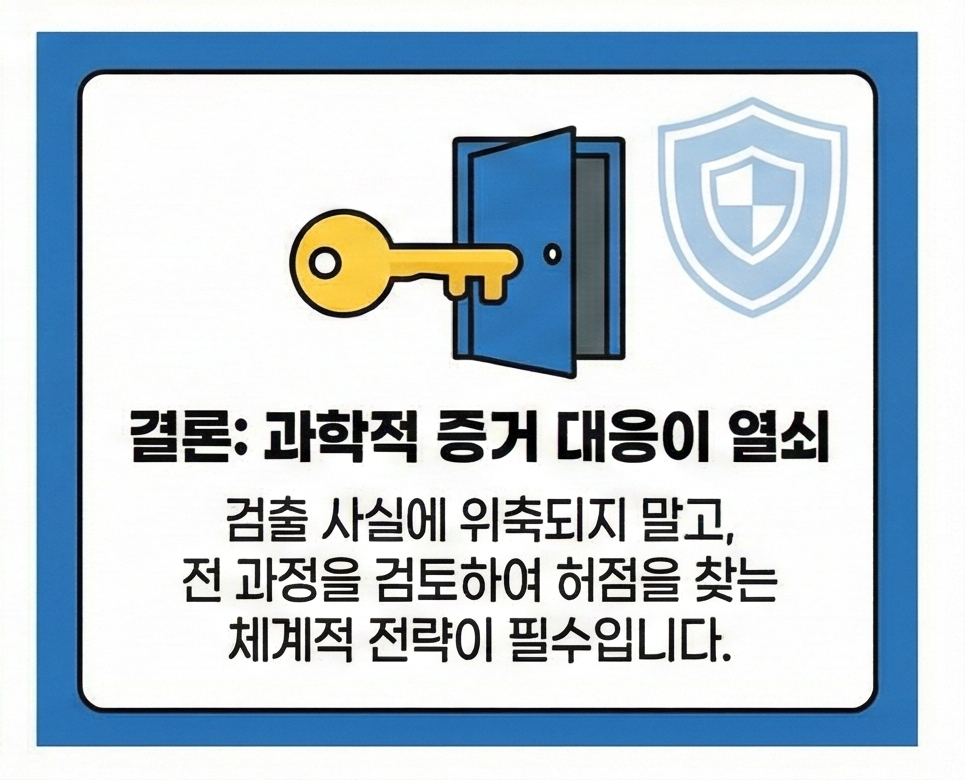 결국 무죄 판결을 이끌어내기 위해서는 DNA 분석을 포함한 모든 감정 자료와 사건 전후의 정황을 입체적으로 분석하여 법관에게 '합리적 의심'을 심어줄 수 있어야 합니다. 이를 위해서는 체계적이고 과학적인 증거 대응 전략이 필수적입니다.