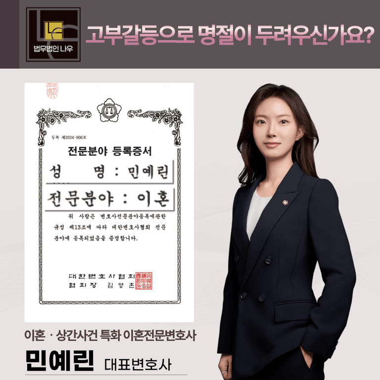 안녕하세요, 울산이혼전문변호사 법무법인 나우 민예린 대표변호사입니다.