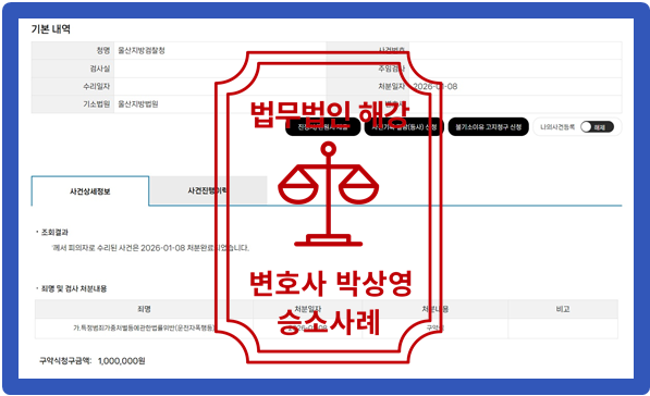 저희 법무법인 해강은 법리적인 검토를 통하여 의뢰인 상황에 맞춘 변호인 의견서 등 작성을 통하여 의뢰인을 위해 최선을 다하였고 이에 [약식기소]를 이끌어냈습니다.