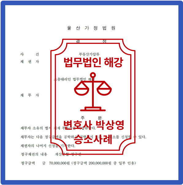법무법인 해강에서는 법리적 검토와 준비서면 등을 통하여 의뢰인의 맞는 법률 조력을 하고자 노력하였고 [성공]하였습니다.