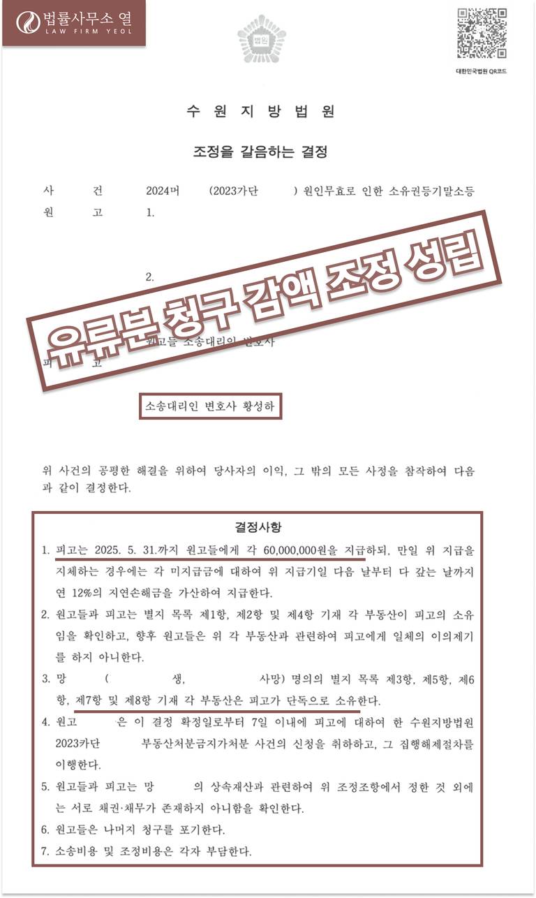 원인무효 주장 철회 및 과도한 유류분 청구를 대폭 감액한 조정 성립
