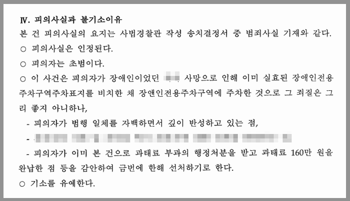 먼저 J가 장애인전용주차구역 주차표지를 폐기하지 않고 가지고 있던 이유, 이를 사용하게 된 경위 등에 참작할 만한 사정이 있다는 점을 잘 정리하여 주장하였습니다.