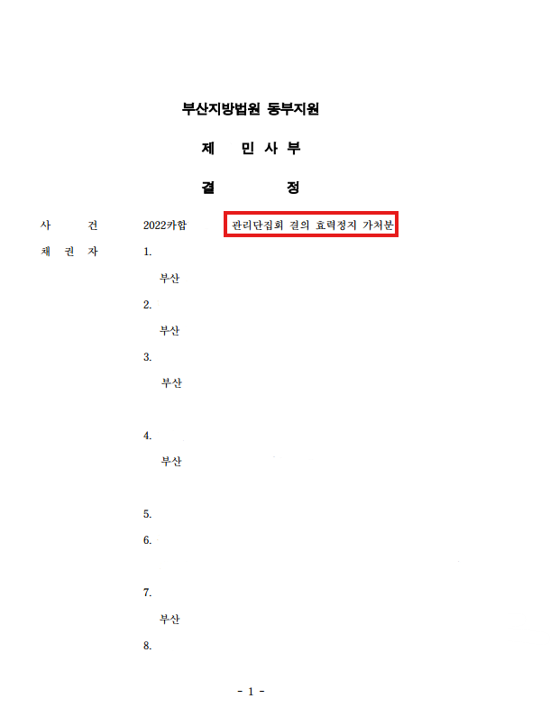 재건축 분쟁에서 관리단 결의 효력정지 가처분이 기각된 사례