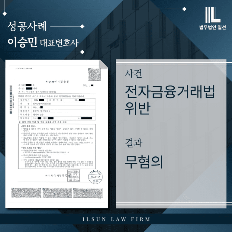 전자금융거래법위반 → 결과 : ‘무혐의’ 처분으로 종결