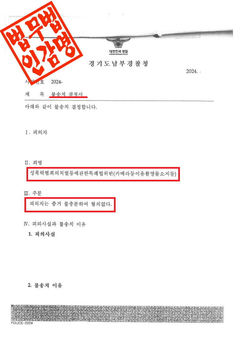 경기도남부경찰청은 이 사건에 대해 다음과 같은 사유로 불송치 결정을 하였습니다.