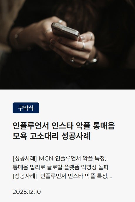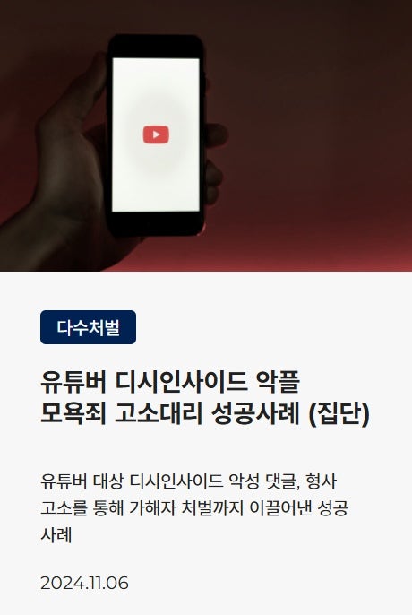 ![[명예훼손] 제3자·팬덤고발 대리하여 악플러 응징하는 전략은?](/_next/image?url=https%3A%2F%2Fd2ai3ajp99ywjy.cloudfront.net%2Fuploads%2Ftitleimage%2Foriginal%2F5f10247ba2f0f301e1483f6b-original.jpg&w=3840&q=75)