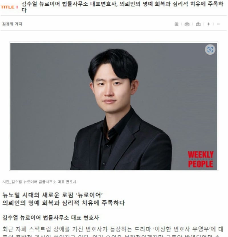 뉴로이어 법률사무소 김수열 대표변호사입니다.