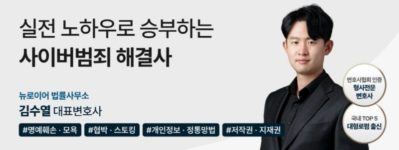 뉴로이어 법률사무소 김수열 대표변호사입니다.