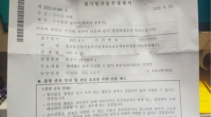 명예훼손 모욕 피의자변호 성공사례 중 일부