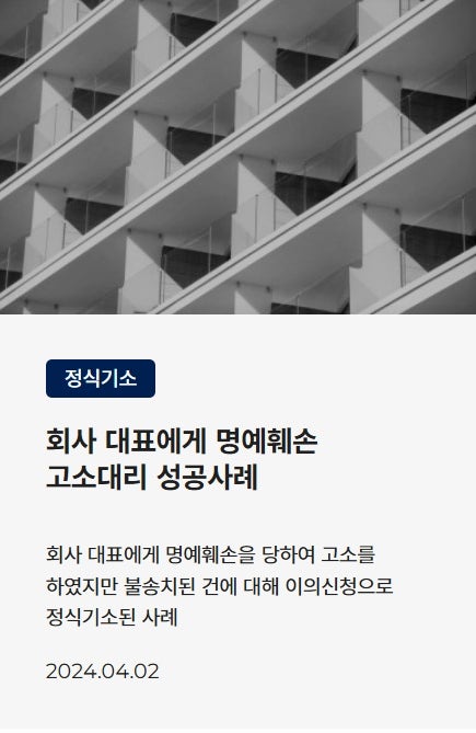 명예훼손 고소하여 정식기소시킨 성공사례