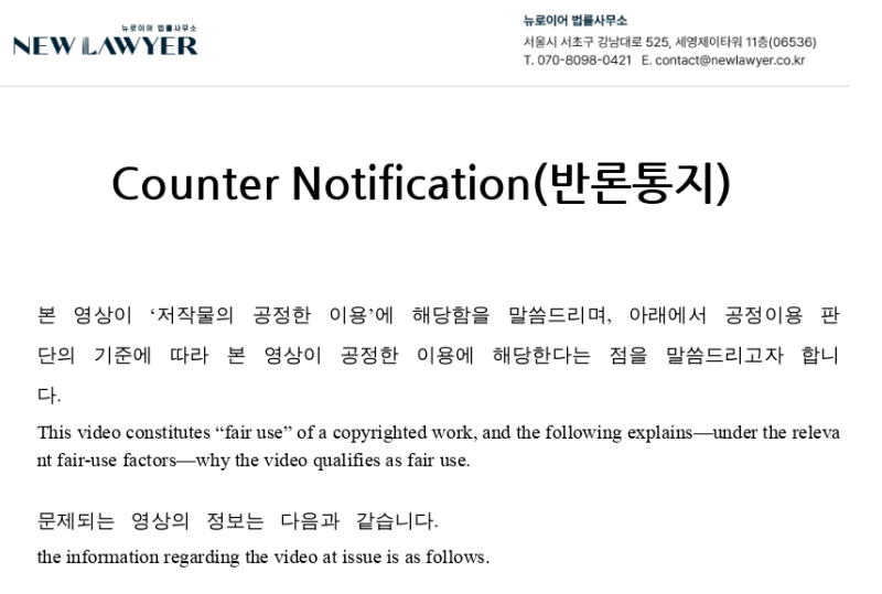 혹 유튜브 반론통지 내용으로 저희에게 이야기를 하고 싶다면, 아래로 연락주시면 됩니다.