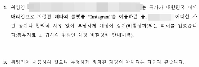 비활성화 영구정지 인스타그램 계정복구 관련 내용증명 중 일부