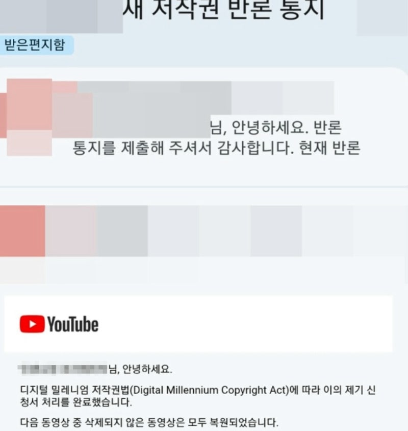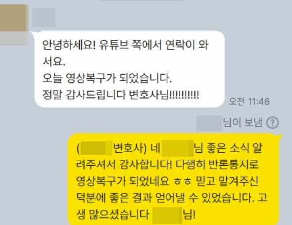 저희가 실제로 유튜브 반론통지에 성공하여 삭제된 영상을 복구해드린 의뢰인께서도,