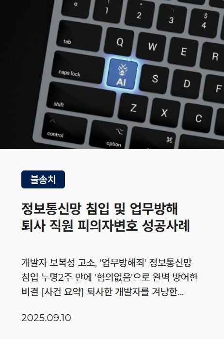카톡 유출범을 고소해 '벌금형'을, 불법 계정 접속범을 역고소해 '구약식' 처분을 이끌어내는 등 수많은 정보통신망법 위반 고소대리를 성공으로 이끌었는데요.