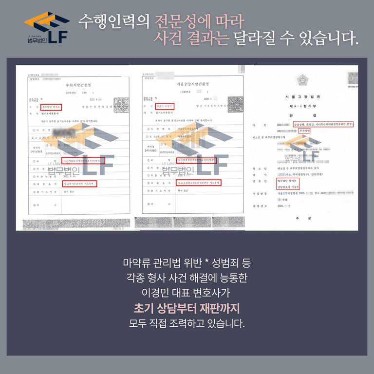 변호인의 사건 해결 경험 정도와 역량에 따라 그 결과는 상이할 수도 있습니다.