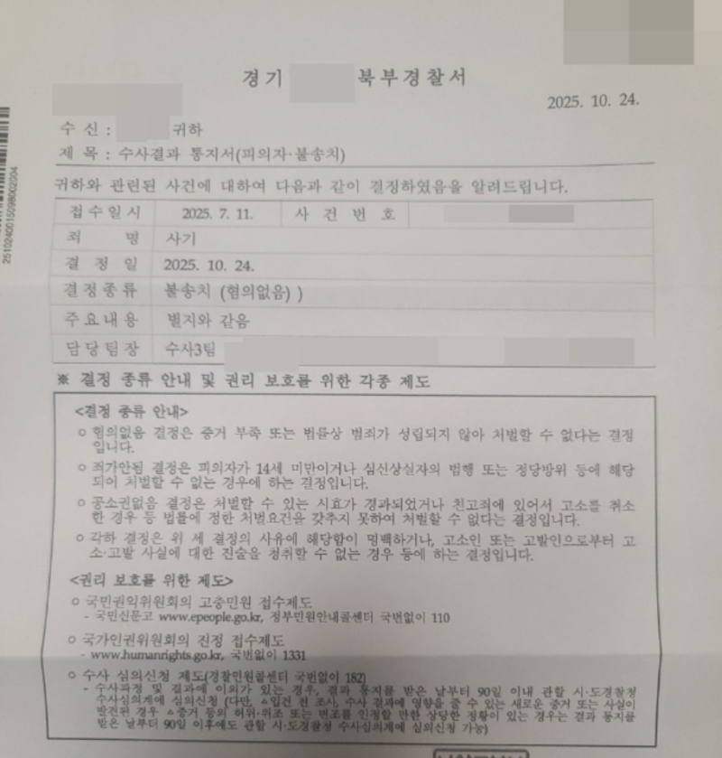 그 결과 이 사건은 단순 채무불이행으로 판단되어 무혐의 처분으로 마무리되었는데요.