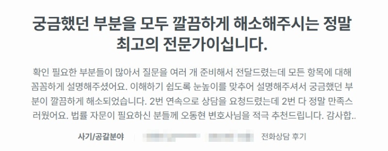 오동현 파트너변호사님 로톡 후기에 많은 의뢰인들께서 감사의 후기를 남겨주셨습니다 :)