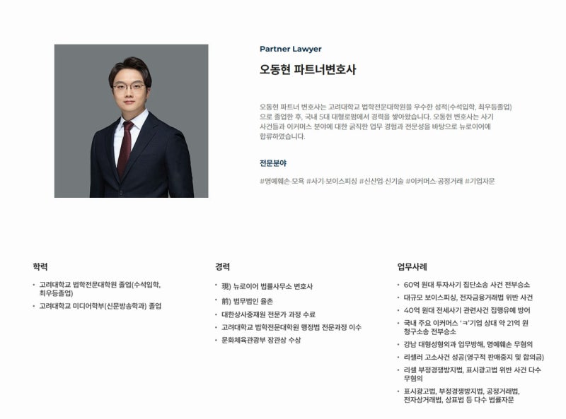 뉴로이어 법률사무소 오동현 파트너변호사입니다.