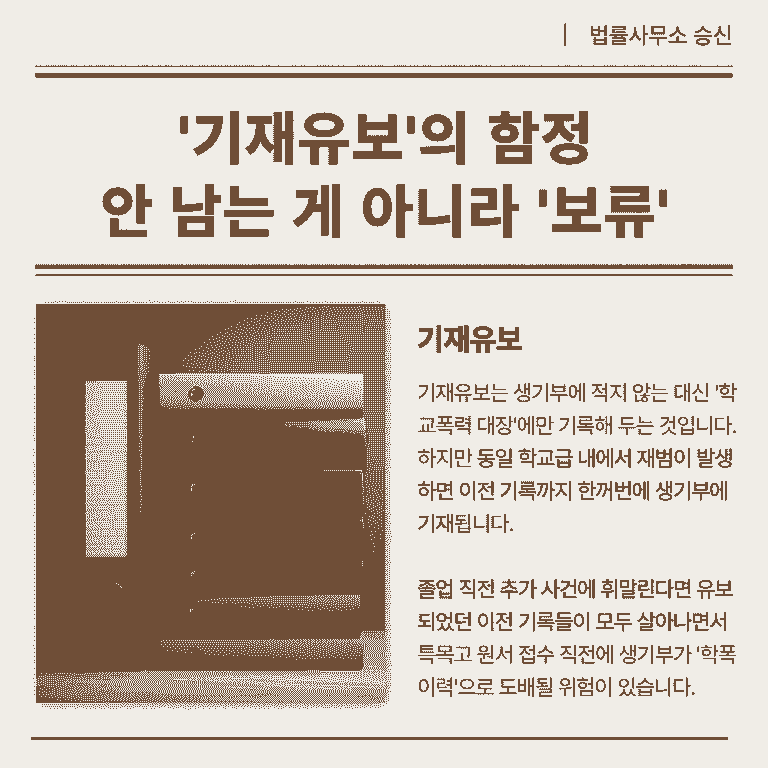 기재유보는 생기부에 적지 않는 대신 '학교폭력 대장'에만 기록해 두는 것입니다.