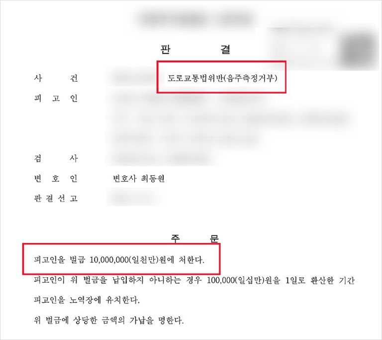 만약 이 사건과 같이 전과가 있는 상태에서 음주측정거부가 있었다면 형량은 더욱 가중됩니다. 이때는 형량이 1년 이상 6년 이하의 징역이나 500만원 이상 3천만원 이하의 벌금으로 규정되어 있습니다. 실무적으로도 음주운전 전과가 있는데도 2회 위반 이상 음주측정거부가 있었다면 징역형이 선고되는 비율이 매우 높습니다.