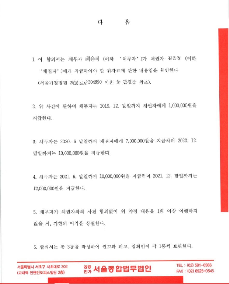 위와 같이 통상적 위자료 범위를 훨씬 넘는 총 합계 4천만원의 합의금을 약정받을 수 있었습니다.