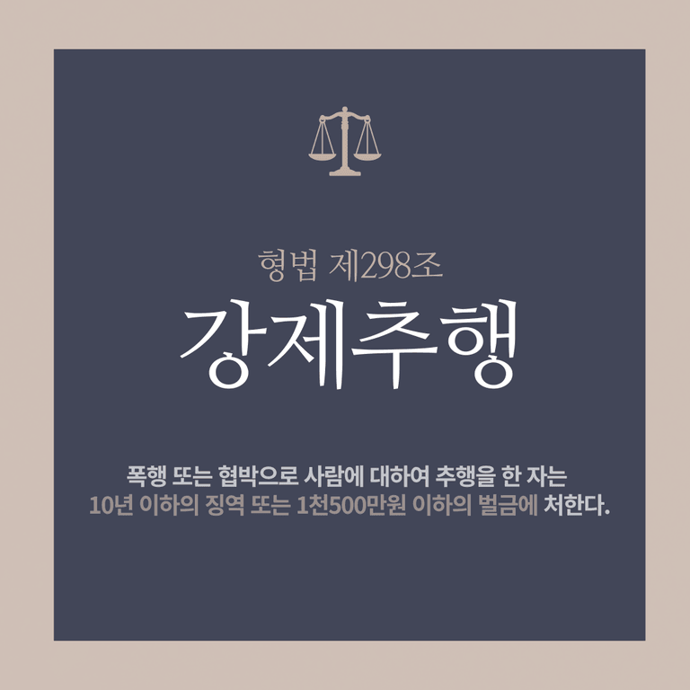 폭행 또는 협박으로 사람에 대하여 추행을 한 자는 10년 이하의 징역 또는 1천500만원 이하의 벌금에 처한다.